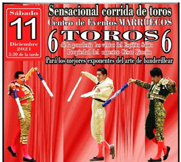 Un día en el cual compartiré cartel con 2 figuras del toreo como lo son, los Maestros Sebastián Vargas y Uriel Moreno "El Zapata", con toros del Maestro César Rincón.