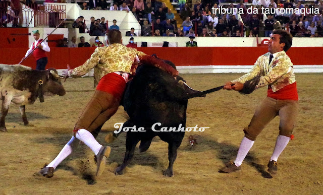 Sin embargo, los integrantes del Grupo de Forcados Amadores de Alcochete, Joaquim Matos y João Ferrera, frente a un toro de Passanha, de 510 kilos de peso, aunque pasaron por momentos dramáticos, al final lograron su objetivo...