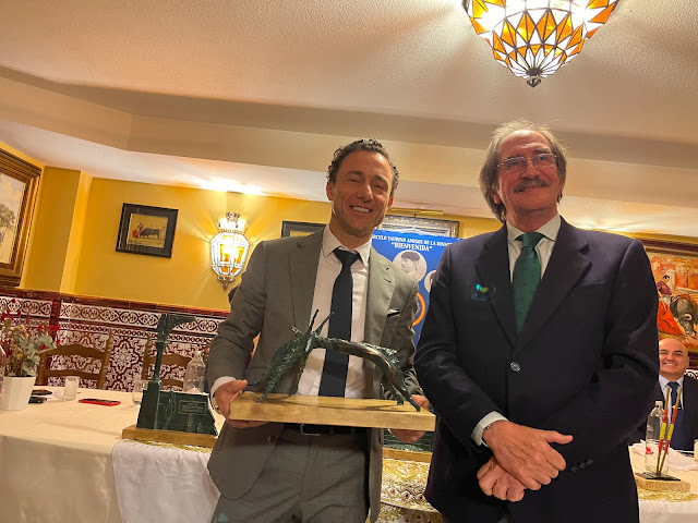 Fue Miguel Mejías "Bienvenida" quien hizo entrega al matador Tomás Rufo del Trofeo "Fábula Taurina" otorgado por sus innegables méritos en la corrida de su confirmación de alternativa con reses de la ganaderia de 'Garcigrande', ganándose su triunfal salida en hombros por la soñada Puerta Grande de la Monumental de Las Ventas del espíritu Santo.