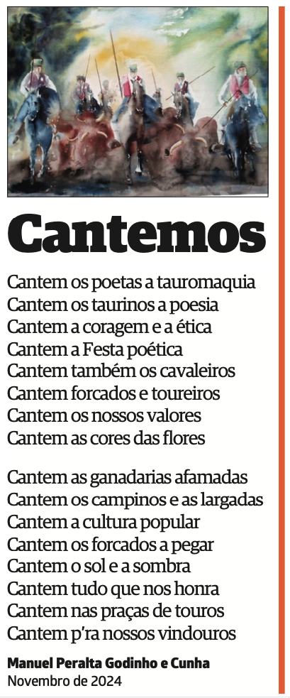 Inicio PERALTA GODINHO "Cantemos", proclama Peralta Godinho... y que el espíritu taurino no decaiga rbtribuna www.tribunadatauromaquia.com y su suplemento periódico gratuito elaborado desde la propia web. Gracias por tu confianza y fidelidad. Muito obrigado.--Los versos de Manuel Peralta, animando el tiempo de otoño-invierno. Para que el sentimiento taurino no decaiga... PERALTA GODINHO TENDIDO EUROPEO Facebook Twitter